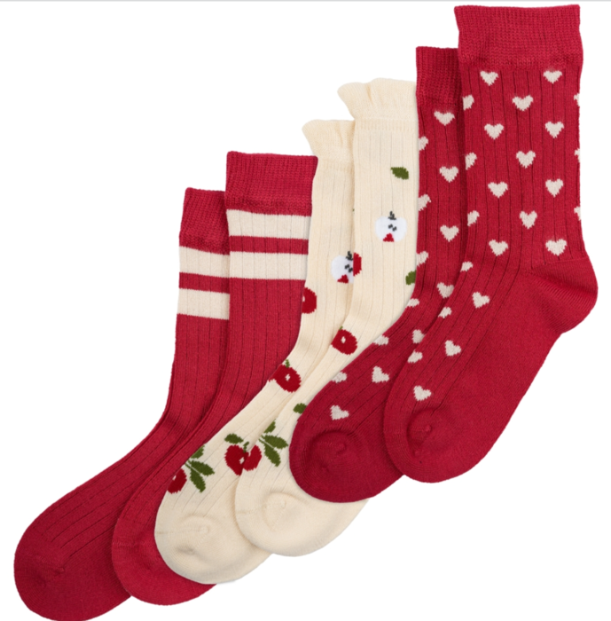 Minipop bambusstrømper 3-pak mix, chili pepper - æbler og hjerter
