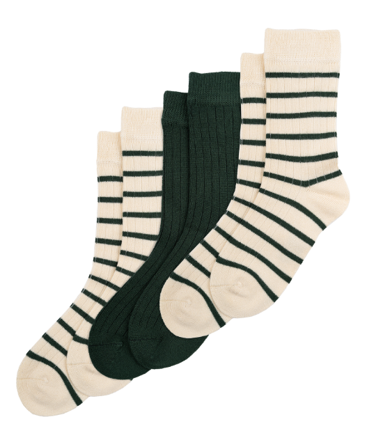 2 par med striber og 1 par ensfarvet grøn