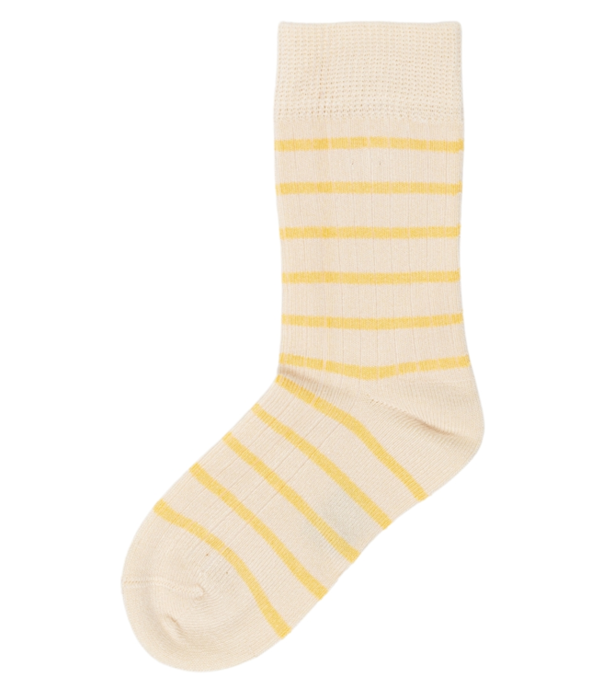Minipop bambusstrømper smalle striber, gul og offwhite