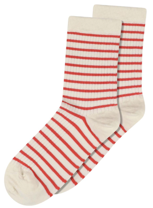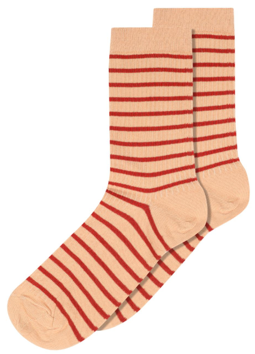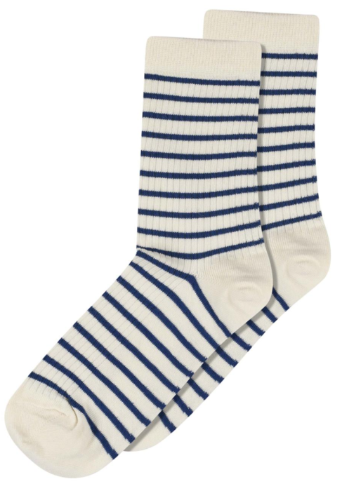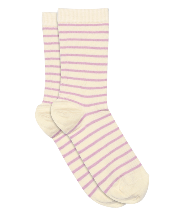 Her er det Lydia bomuldsstrømpee i en blød ribbet kvalitet med striber.