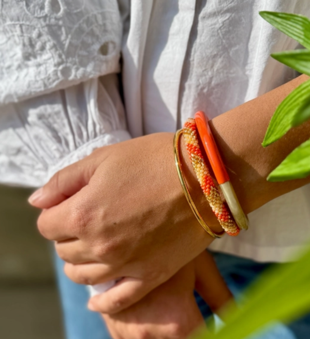 Maison Kizo Nepal armbånd af glasperler, #08 koral og gylden