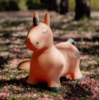 Ræven Lela, er i en varm orange farve med hvide og antracitgrå tegninger på.
