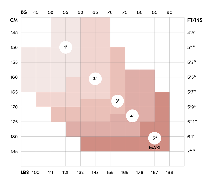 Størrelse XL er med en kile bagtil.